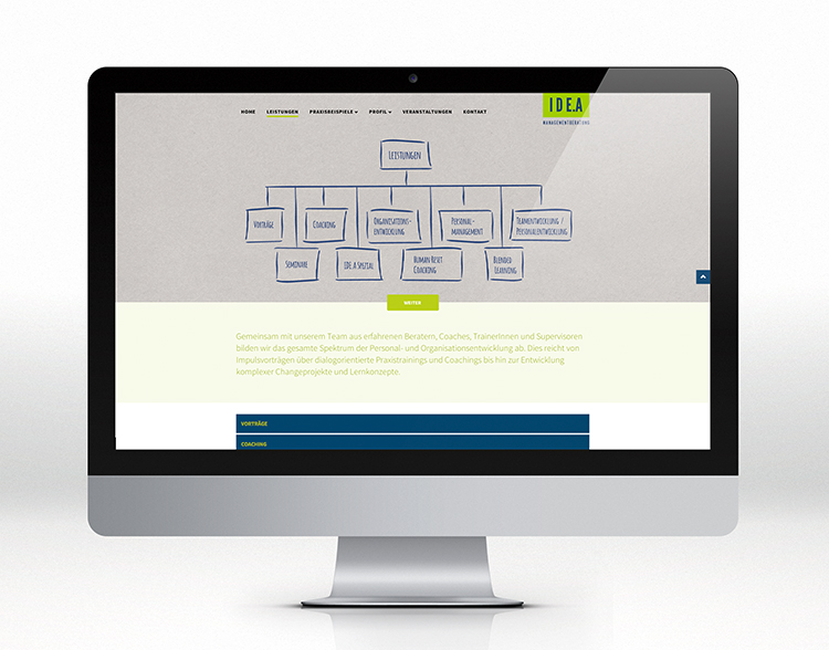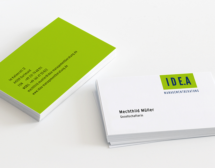 Für die Managementberatung IDE.A haben wir ein neues Corporate Design inkl. Wort-Bild-Marke, Briefbogen, Visitenkarten und Website gestaltet.